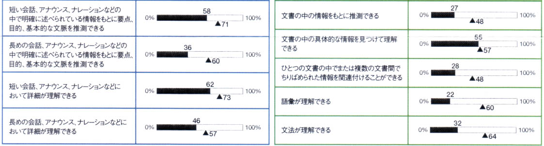 どの項目でも平均以下とはいえ、一番平均に近い点が取れてるのが「文書の中の具体的な情報を見つけて理解できる」部分なのは、多読の効果かなぁ。